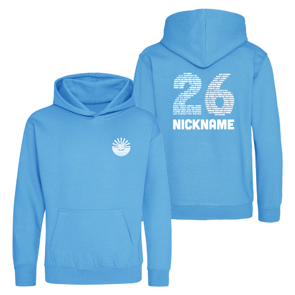 Leavers Hoodies for those in the last year of school at Broad Haven Primary. School logo embroidered left chest, and with a large '26' printed on the back made up of pupils names. Optional large name/nickname printed underneath the back print.