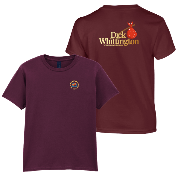St Katherines Stratford Players logo embroidered to left chest, and Dick Whittington logo printed large on back.